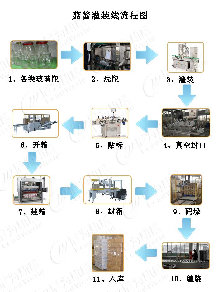 尼為機械為您提供整套菇醬灌裝線設備,包括灌裝、旋蓋、貼標、殺菌、后道裝箱碼垛等。